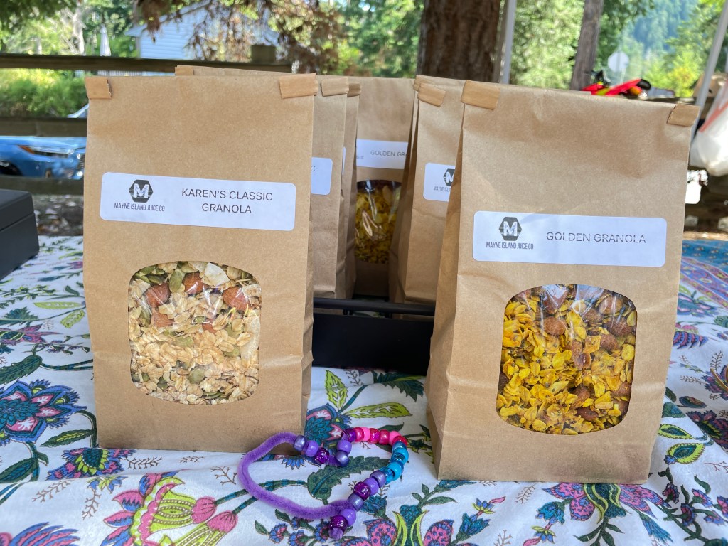 Golden Granola (All Organic: Certified Gluten-Free Oats, Almonds, Coconut Flakes, Coconut Oil, Chia Seeds, Turmeric, Ginger, Cinnamon, Sea Salt, Black Pepper, Nutmeg, Clove)